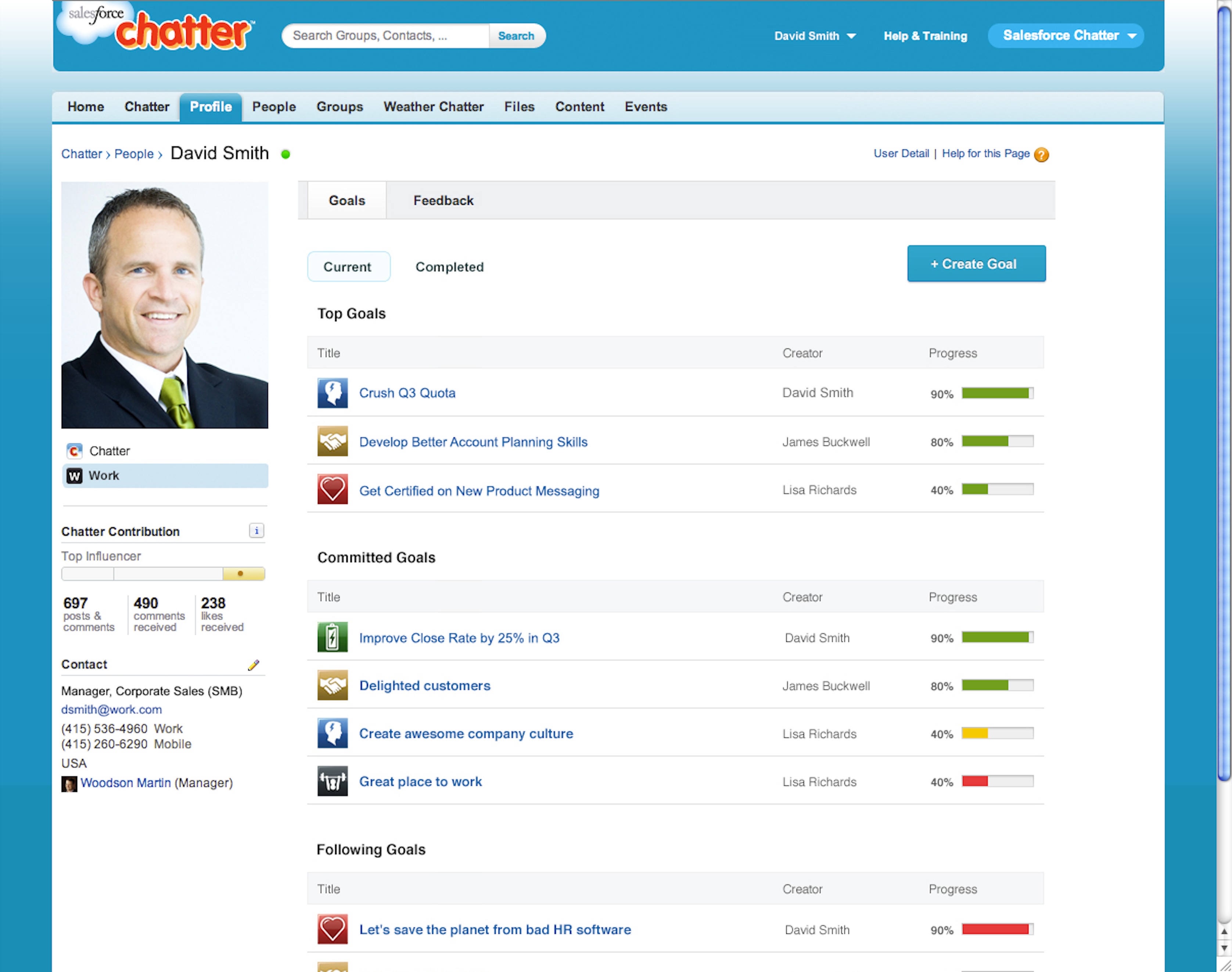 Work.com users are now fully immersed within the capabilities of Rypple, Sales Cloud, Service Cloud, and Chatter, making it a collaborative ecosystem for Salesforce users. In other word’s, the social management performance platform now contains functions for CRM, customer support, and a social network for enterprise. It is also reported that some of these features came directly from Facebook through a new partnership between the two and that many of the features are directly inspired by Facebook’s own workplace views. Work.com’s reinvention has produced some other notable partnerships as well, notably with that of Amazon to provide giftcard rewards to act as workplace incentives.