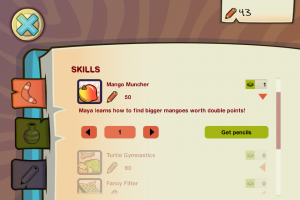 Get Water features a continuous story featuring Maya broken into chapters and you progress by collecting enough water to hit the 100% mark for that level. It’ll take a few runs (or in my case many) to get the requirements to progress, but there are power-ups you can purchase with the in-game currency of pencils. You can earn pencils from playing the game and earning water droplets (points) or you can use the micro transaction system and buy pencils with money.