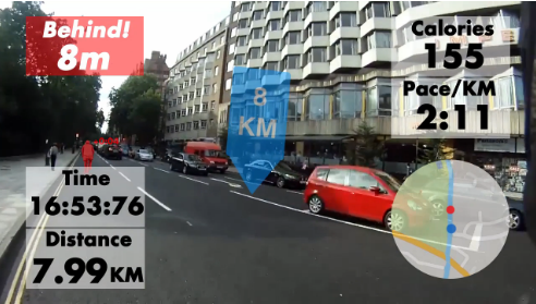 According to TechCrunch, co-founder Alex Foster aims to “…make exercise incredibly addictive and enjoyable through augmented reality exercise experiences on, primarily, Google Glass. We are offering similar promises; more motivation, tracking, competition… but visually and live, that is, the user knows if they are beating or falling behind their personal best or target pace the whole way through the run.”