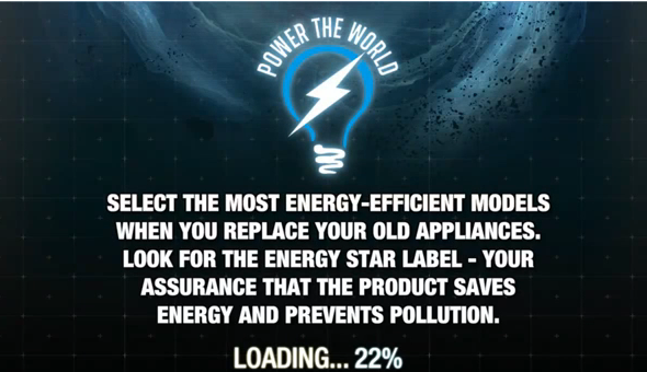 There are some loading screens with environmental tips but like most other social good games that do this, their effect on reducing power consumption is likely menial.